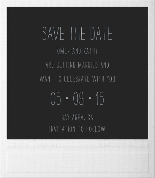 Save the Date. Omer and Kathy are getting married and want to celebrate with you! 05-09-15. Bay Area, CA. Invitation to Follow.